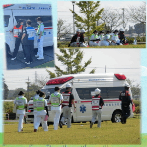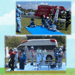 実動訓練では、要救助者役や、地域住民役として参加しました。