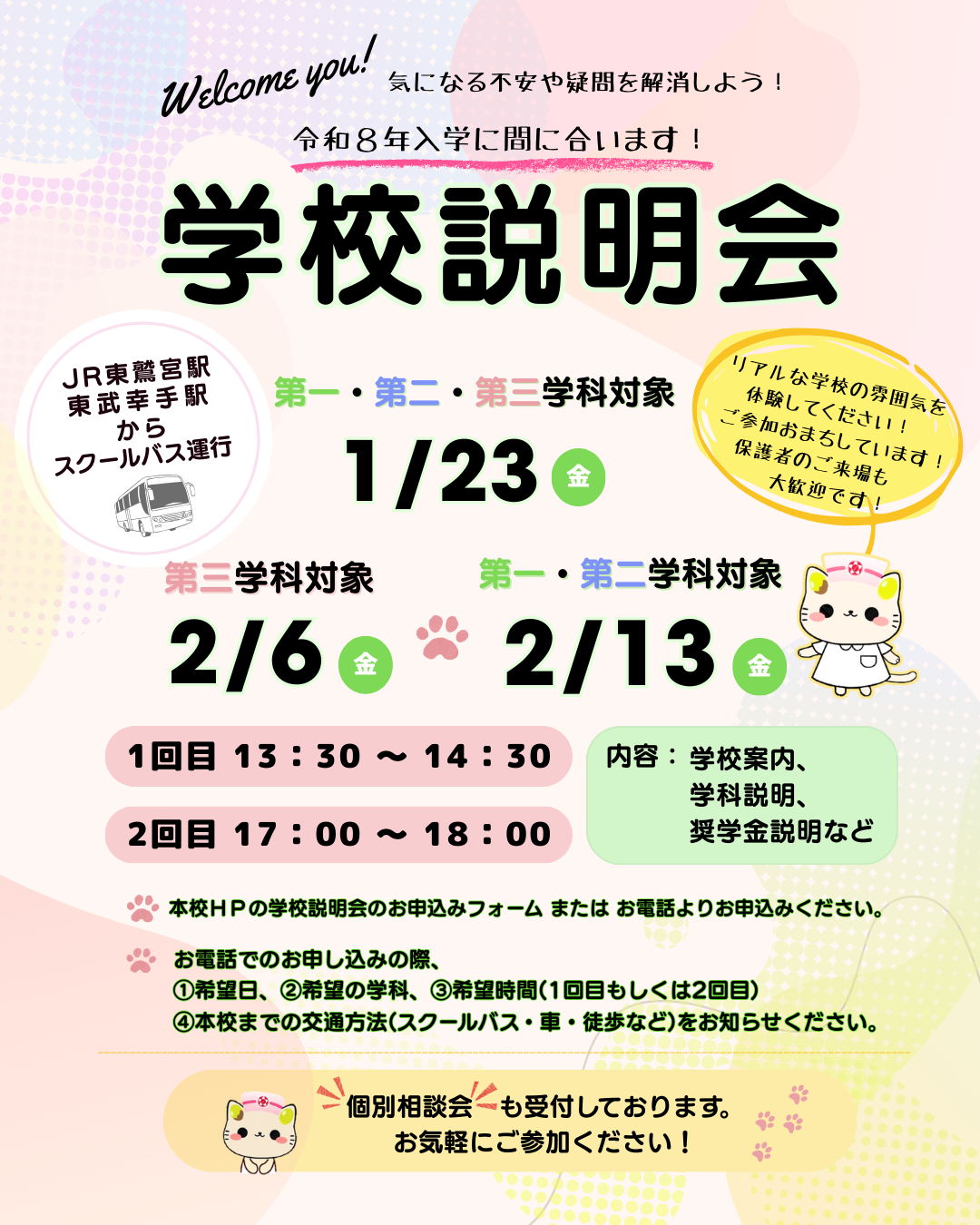 第一学科・第二学科・第三学科 学校説明会(R8.1/23・2/6・2/13)追加開催について